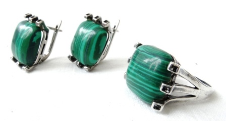 Комплект Малахит кольцо и серьги