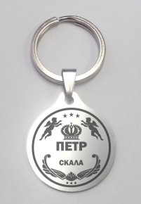 Брелок Имена "Петр" 6см, мед. сталь