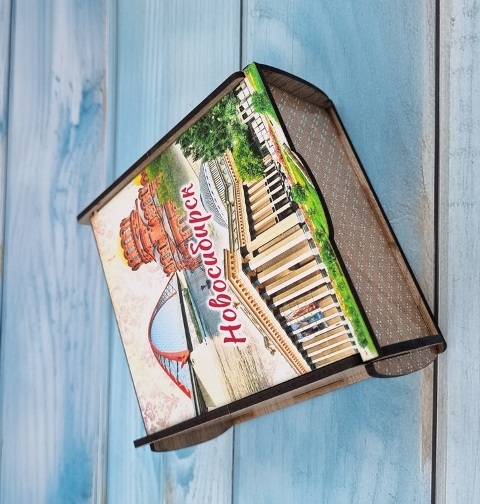 Н Шкатулка квадрат "Новосибирск" цветная Белочка Привет из Сибири 12,5х12,5х6см, дерево