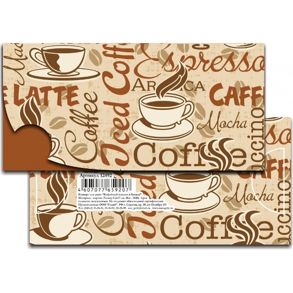 Конверт для денег Кофейный (Чашки и буквы)
