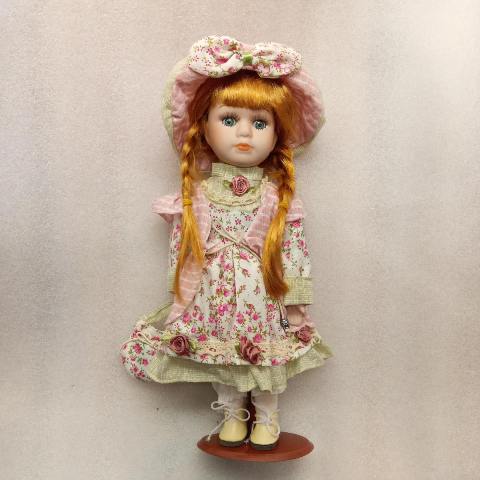 Кукла 32см цветное платье, фарфор, текстиль