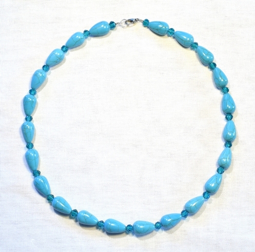 Бусы Бирюза капля, Чешское стекло 10х16мм 48см