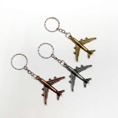 Брелок Самолет 3 цвета металл 5х3 см уп/12шт