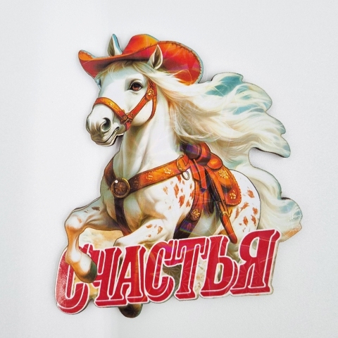 Магнит новогодний Лошадь однослойный "Счастья" 6х9,5см, дерево