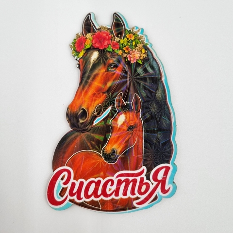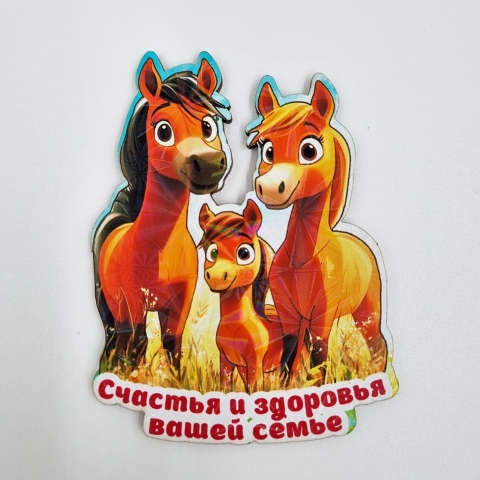 Магнит новогодний Лошадь однослойный "Счастья и здоровья вашей семье" 6,5х8,5см, дерево